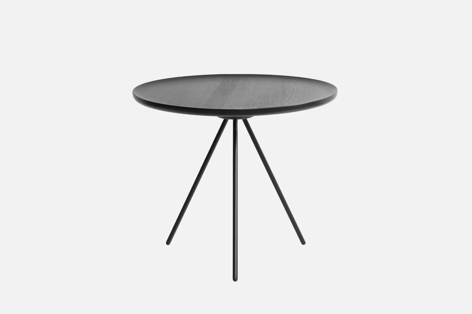 The top of the Key Table is turned solid ash or walnut. The simple pleasure of the wood grain, visible even in the black and white lacquered versions, is fundamental to this design. Delicate tripod legs support the tabletop, creating a feeling of airiness and modernity. The Key Table is both light and strong; it is shipped flat-pack and requires minimal effort for assembly (the tripod legs screw smoothly and efficiently into the top). This timeless design from studio GamFratesi suits any interior and works well alone or in a cluster.