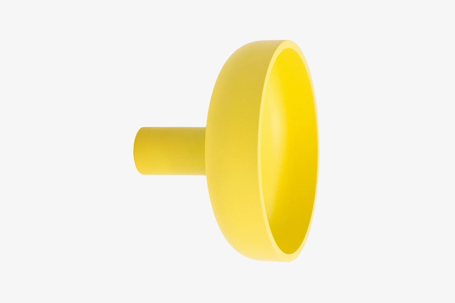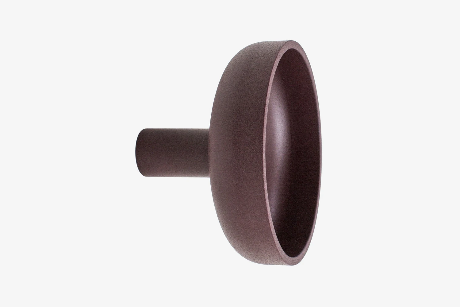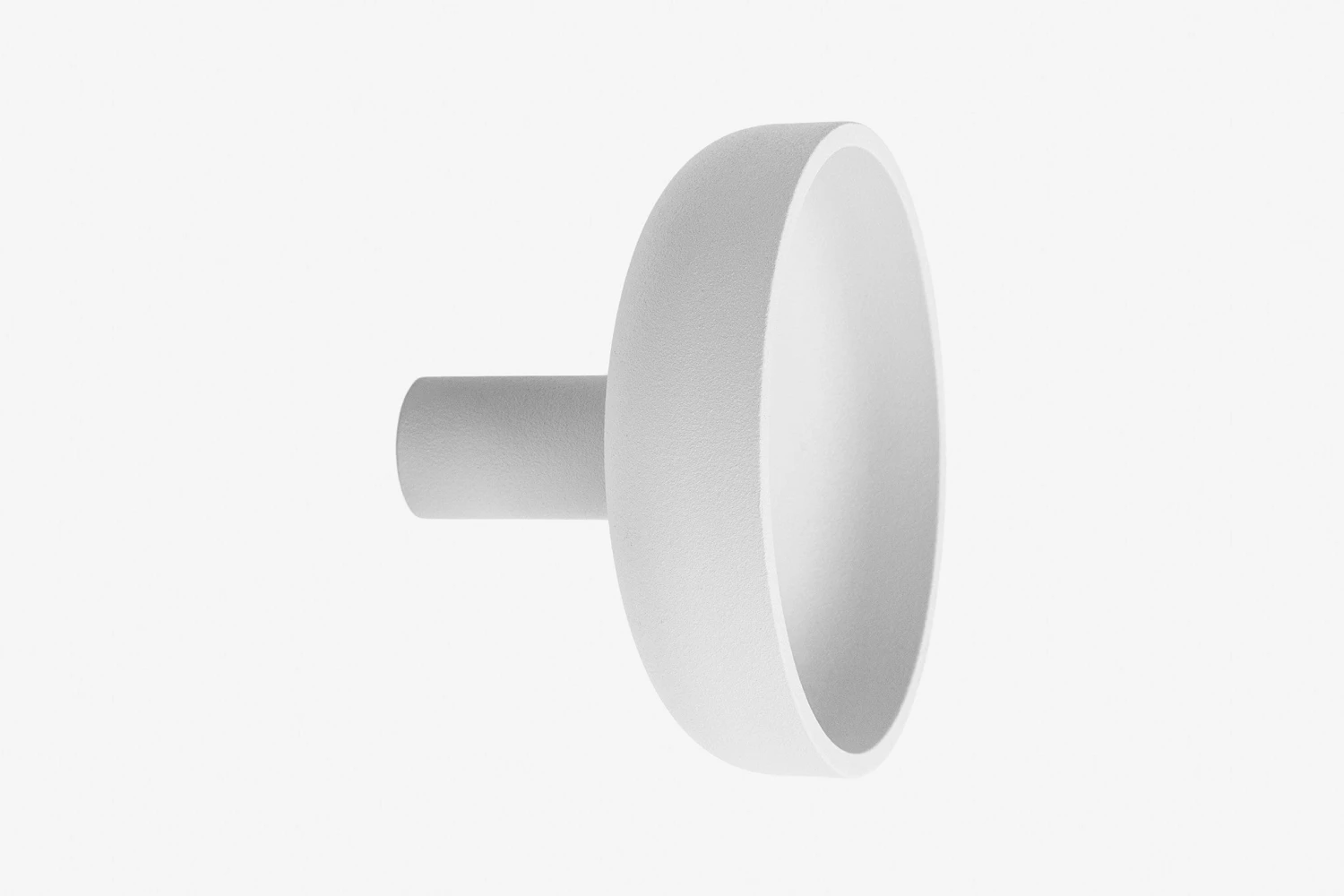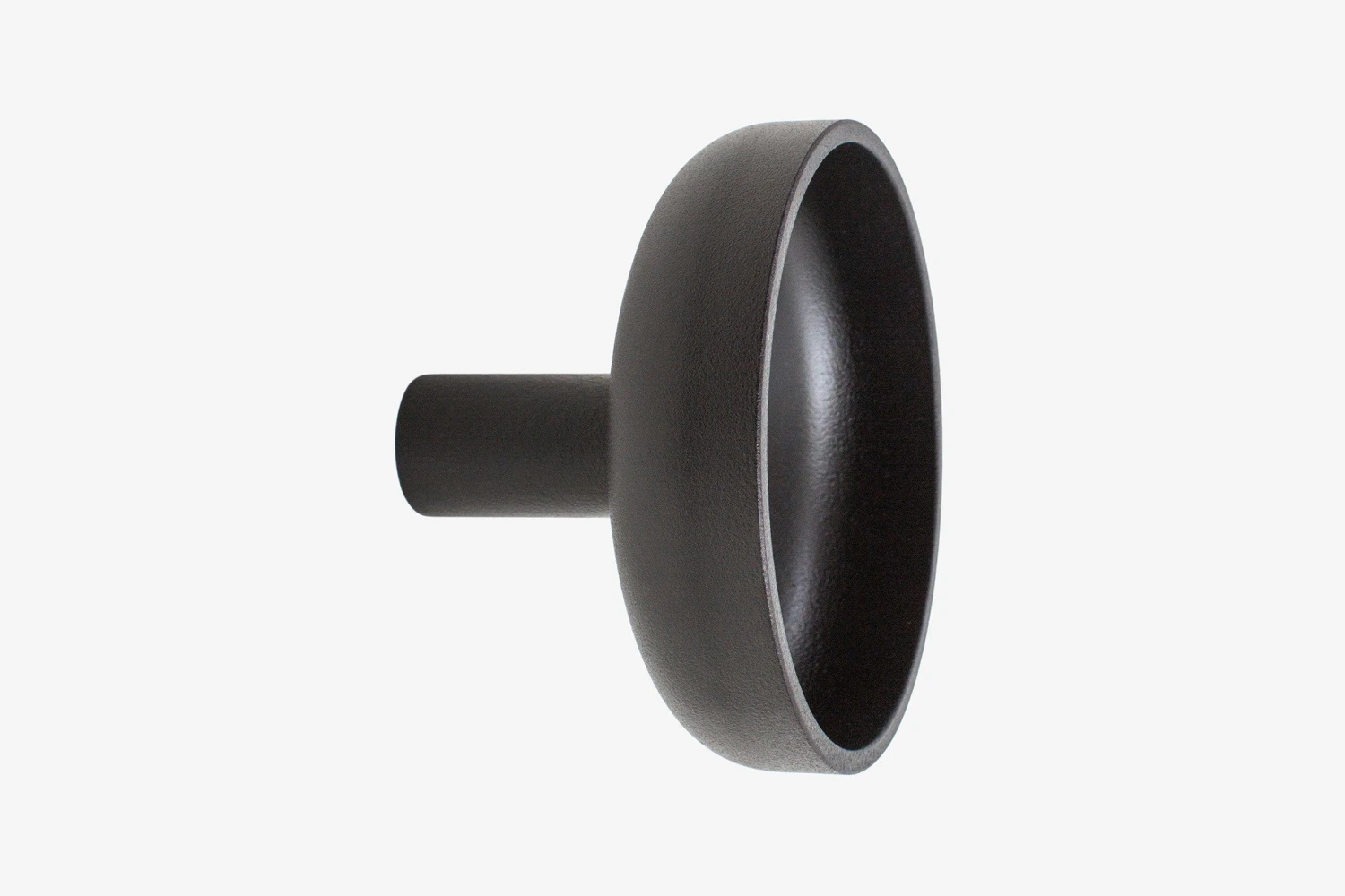 A heavy-duty press stamps thick plates of steel into shape to create the Punched Metal Hook. These tough, industrially inspired objects by Julien Renault are a tribute to the precision and efficiency of metalworking processes. Their substantial scale and elegant form make them not only the perfect place to hang your coat, but also miniature sculptures in their own right. Various powder-coated color options add to the hooks’ decorative appeal. Use them in strict rows for regimented order or scatter them liberally across your wall for a dynamic effect.