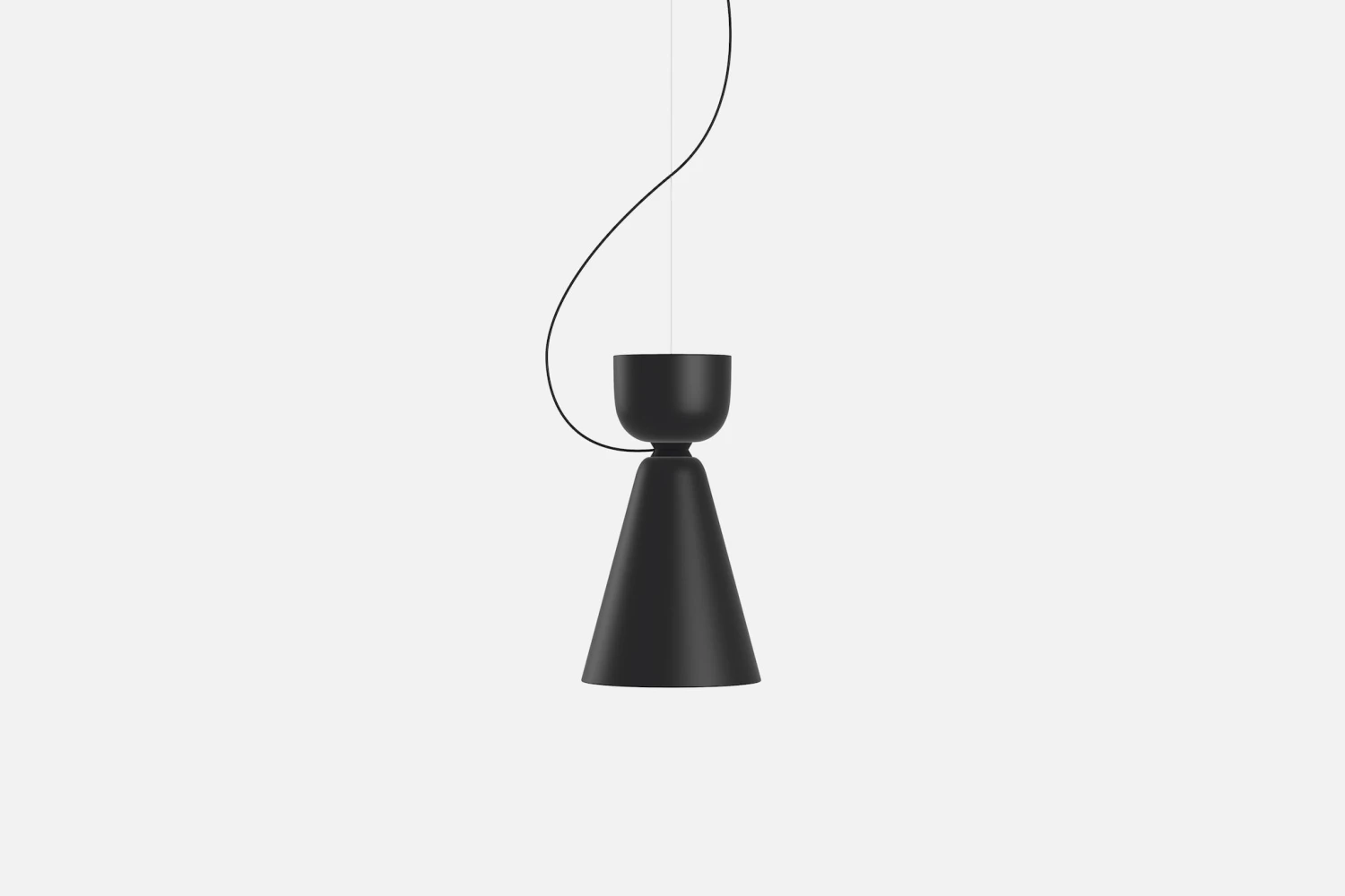 Variety and flexibility are at the heart of the modular Alphabeta lighting system by Luca Nichetto. Eight different shade shapes in eight powder-coated colors equate to a plethora of possibilitiesβ1024Β to be exact. Whatever your aesthetic, from strict and somber all-black to playful and flamboyant color combinations, sharp lines or voluptuous forms, Alphabeta can accommodate them all. Alphabeta are bidirectionalβmeaning they emit light from both the top and the bottom of the shadeβso that you need not choose between spotlight and ambient light but can enjoy both. The Alphabeta Pendant Lights hang on a metal wire, with a sinuous cable adding a curvaceous detail. Pendants can be used singularly or in groups for an impactful installation. Every turned-steel shade and milled part is made in Italy.