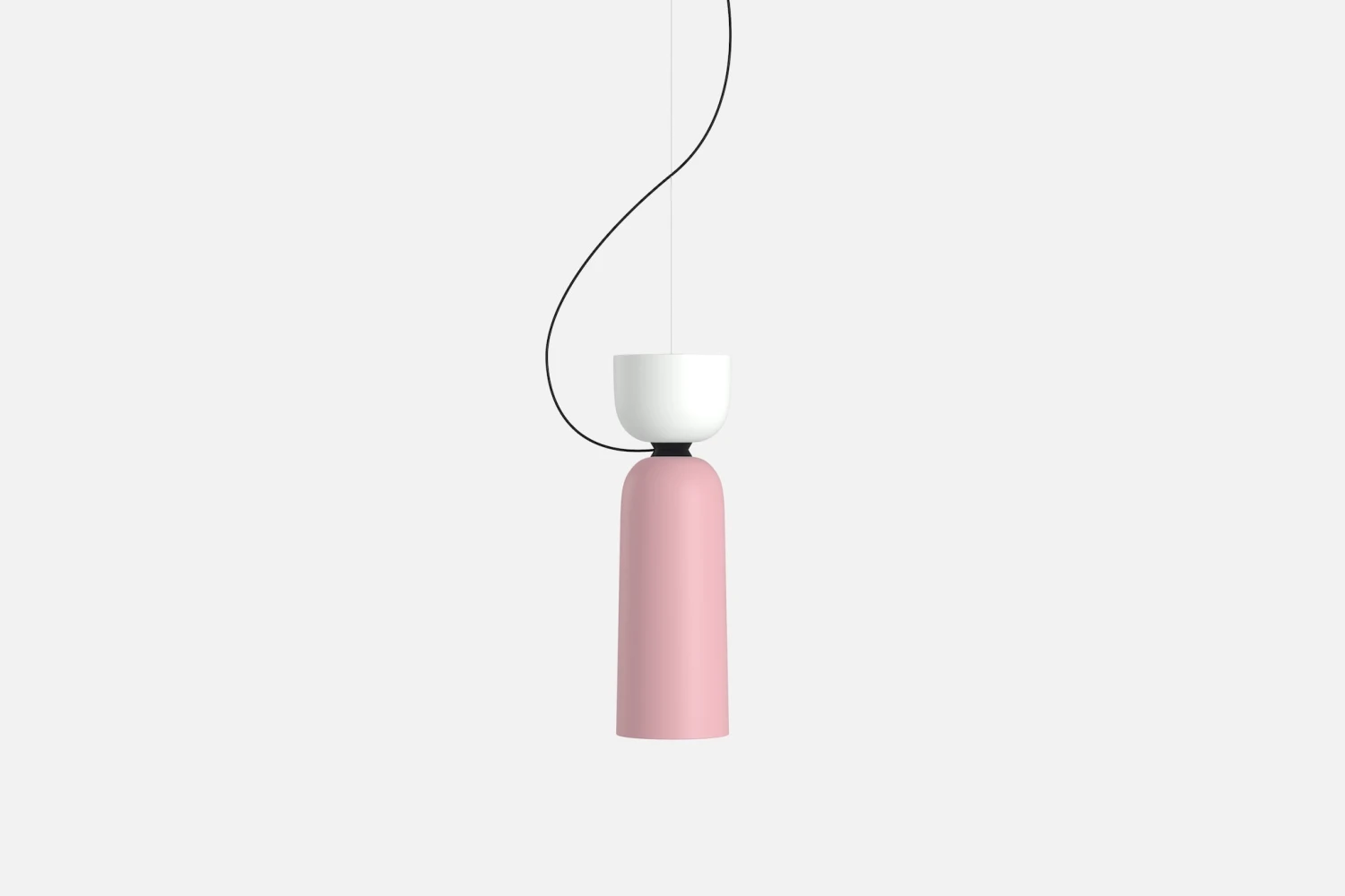 Variety and flexibility are at the heart of the modular Alphabeta lighting system by Luca Nichetto. Eight different shade shapes in eight powder-coated colors equate to a plethora of possibilitiesβ1024Β to be exact. Whatever your aesthetic, from strict and somber all-black to playful and flamboyant color combinations, sharp lines or voluptuous forms, Alphabeta can accommodate them all. Alphabeta are bidirectionalβmeaning they emit light from both the top and the bottom of the shadeβso that you need not choose between spotlight and ambient light but can enjoy both. The Alphabeta Pendant Lights hang on a metal wire, with a sinuous cable adding a curvaceous detail. Pendants can be used singularly or in groups for an impactful installation. Every turned-steel shade and milled part is made in Italy.